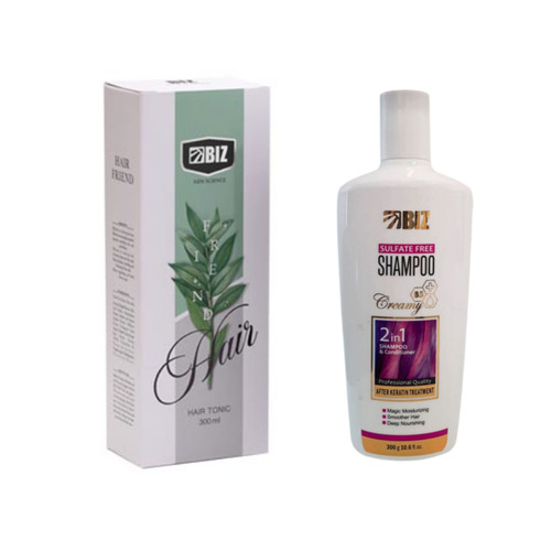 پک قطع ریزش مو بعد از کراتین با شامپو فری سولفات بیز و تونیک هیر فرند