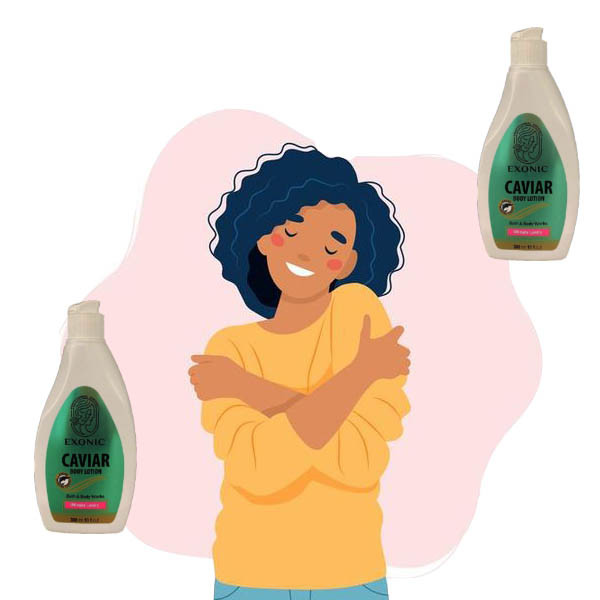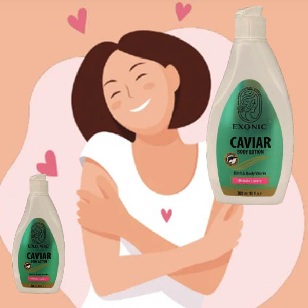 عصاره خاویار که مروارید سیاه نیز نامیده می شود منبع سرشاری از انواع مواد معدنی، اسیدهای آمینه و آنتی اکسیدان بوده و همچنین حاوی ویتامین های A,E,D,C و ویتامین های گروه B و نیز اسیدهای چرب امگا 3 می باشد که استفاده از آن در محصولات بهداشتی و آرایشی باعث ترمیم، نرمی، درخشندگی و جوانسازی پوست می گردد. بسیاری از ما خشکی پوست خصوصا پس از استحمام را تجربه کرده ایم، لوسیون بدن خاویار Exonic با دارا بودن ویتامین A,B,D,E,C و آنتی اکسیدان های فراوان و امگا 3 باعث لطافت و نرمی پوست شده و با تحریک کلاژن سازی و افزایش خاصیت الاستیسیته پوست روند پیری و ایجاد چروکهای پوستی را به تعویق می اندازد.