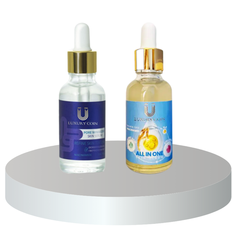 این پک شامل دو سرم حرفهای و مکمل از برند لاکچری کوین است که با فرمولاسیون پیشرفته، هم ظاهر منافذ باز پوست را کاهش میدهند و هم بهصورت عمیق پوست را تغذیه، ترمیم و شاداب میکنند. این ترکیب باعث میشود نتایج سریعتر، واضحتر و مؤثرتر از استفاده تکی هر محصول باشد.