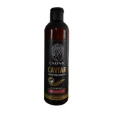 عصاره خاویار که مروارید سیاه نیز نامیده می شود منبع سرشاری از انواع مواد معدنی، اسیدهای آمینه و آنتی اکسیدان بوده و همچنین حاوی ویتامین های A,E,D,C و ویتامین های گروه B و نیز اسیدهای چرب امگا 3 می باشد که استفاده از آن در محصولات بهداشتی و آرایشی باعث ترمیم، نرمی، درخشندگی و جوانسازی پوست و مو می گردد. شامپو حاوی عصاره خاویار Exonic حاوی مواد ضدالکتریسیته ساکن بوده و شانه پذیری موها را افزایش داده و به آن ها حالتی ابریشمی می دهد. استفاده از این شامپو باعث ایجاد یک لایه حفاظتی روی موها می شود که آن ها را در مقابل اشعه مخرب UV نیز محافظت نموده و موجب حفظ رنگ طبیعی مو نیز خواهد گردید.